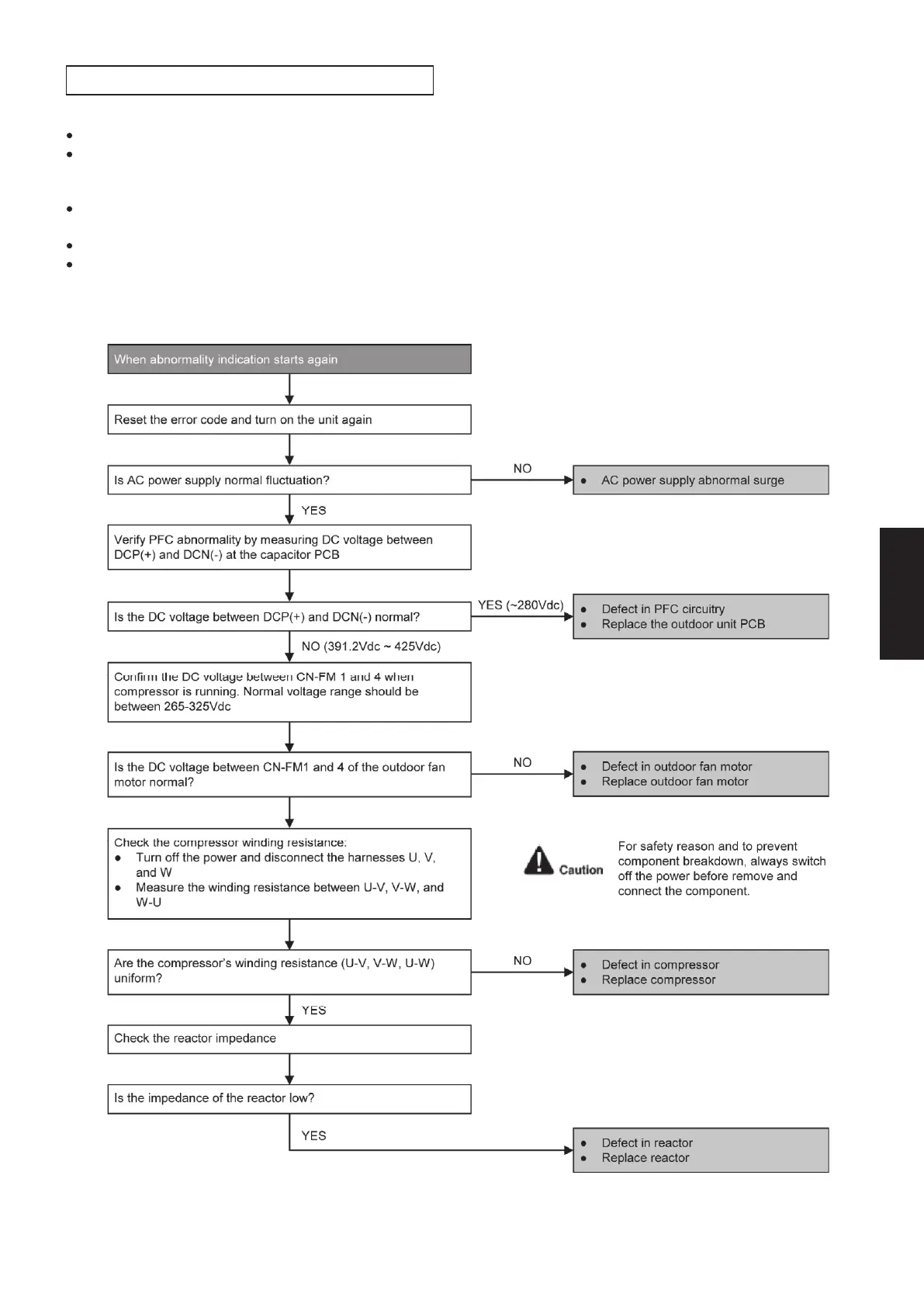 the outdoor unit main PCB senses abnormal DC voltage level for power transistors.