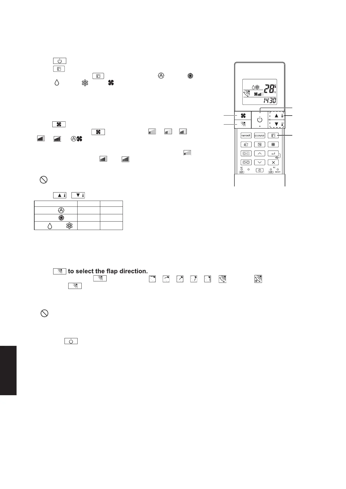 • Never try to manually move the flap (up-down wind direction plate) that is operated by the remote