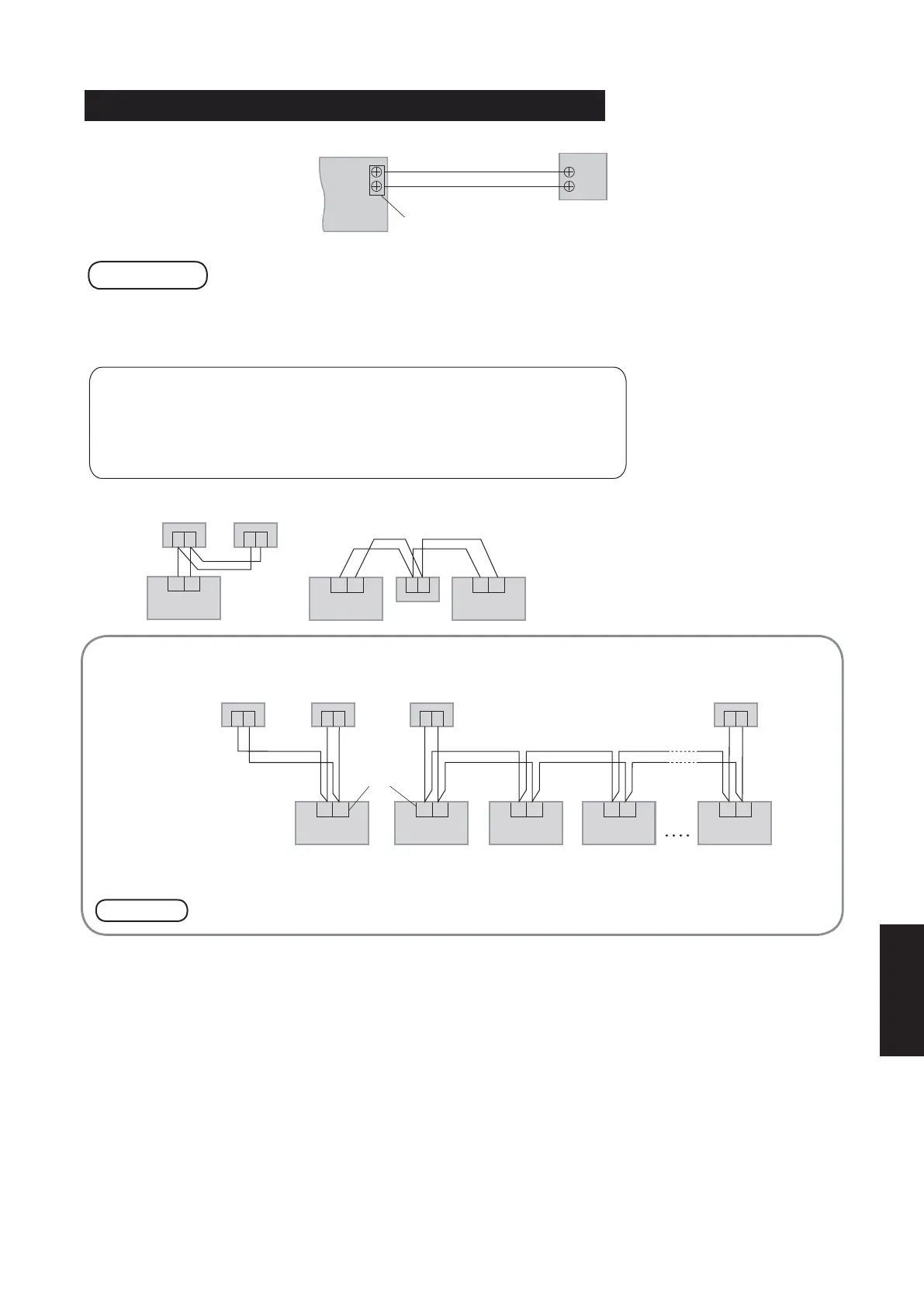 Be careful not to connect cables to other terminals of indoor units (e.g. power source wiring