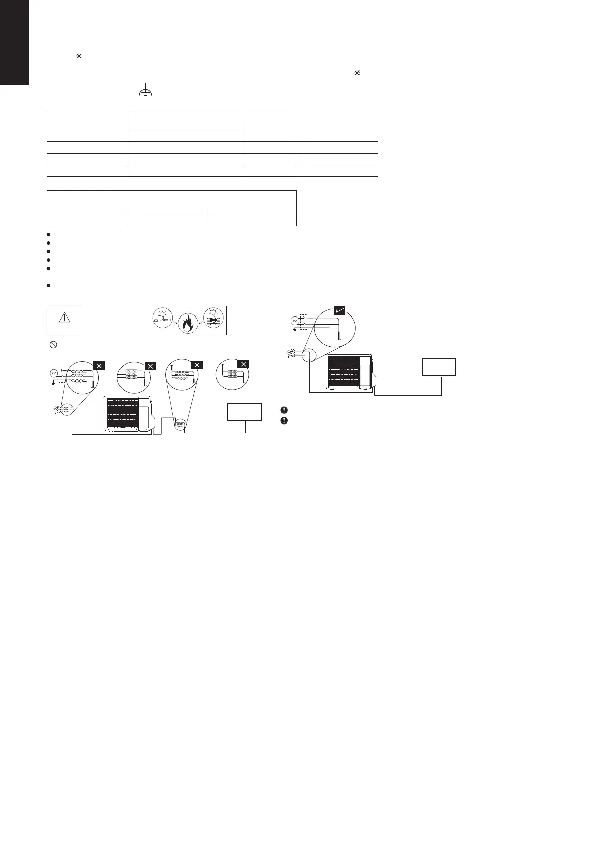 Decide the length and size of the power supply cable based on the maximum ampere tabulated above in accordance with the national wiring regulations.