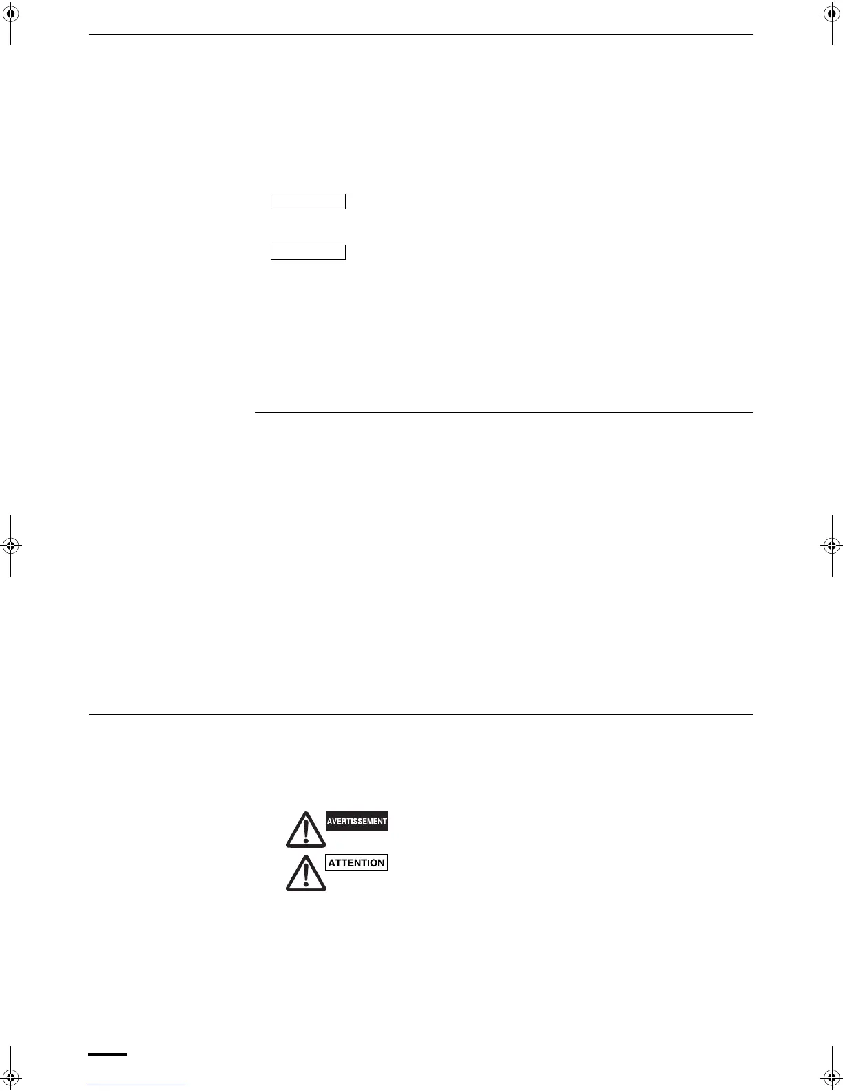 Les symboles suivants utilisés dans ce manuel avertissent d’un danger potentiel pour