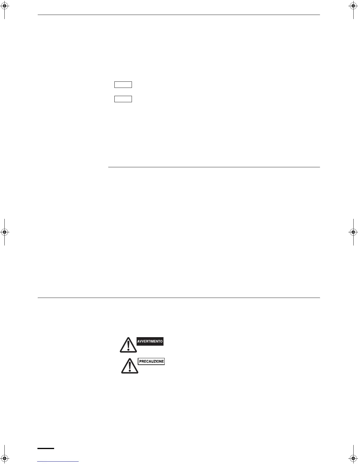 I simboli seguenti sono usati in questo manuale per mettere in guardia l’utente e il