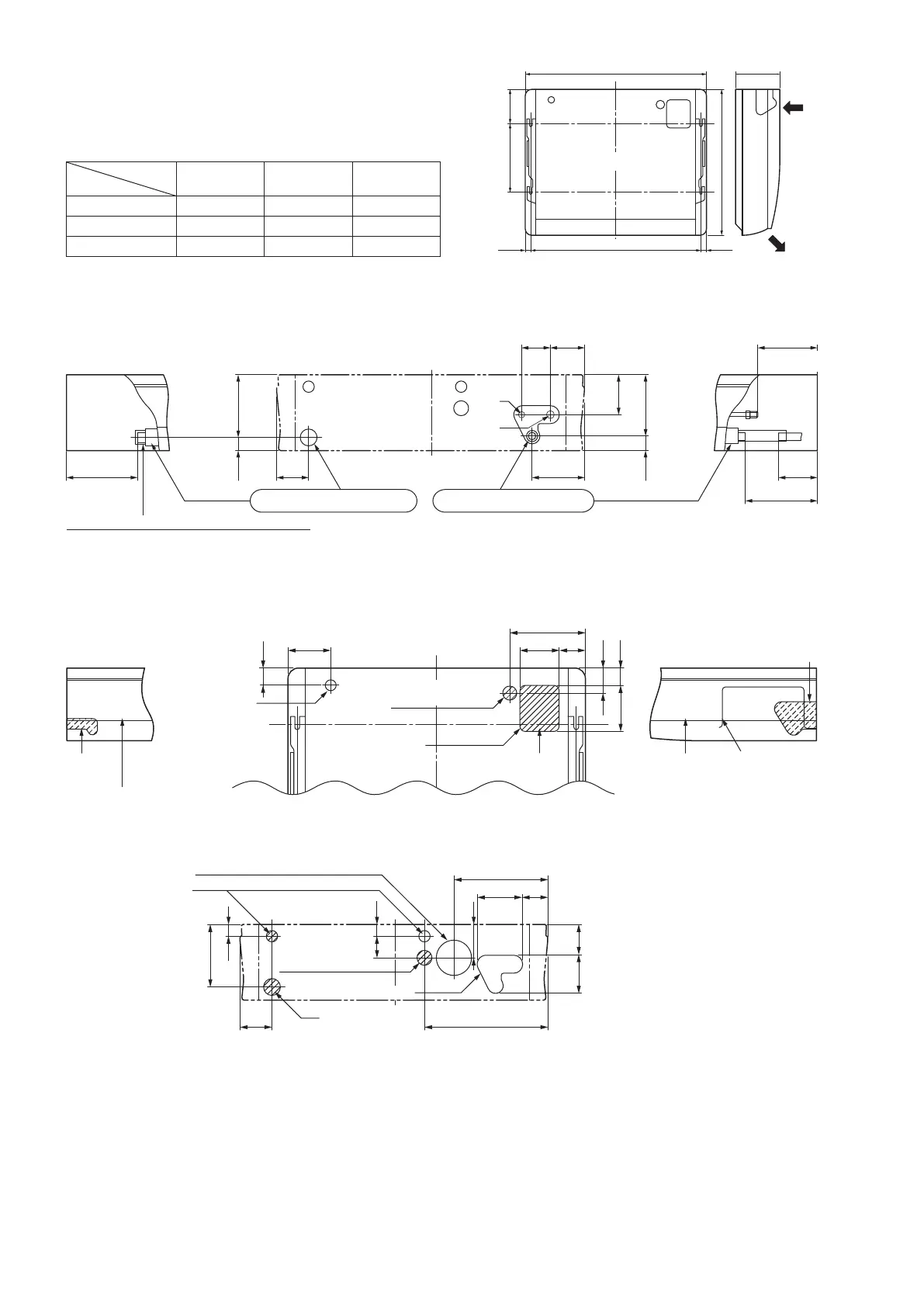 (3) Unit opening position (Refrigerant tubing • drain hose • power inlet port • remote controller wiring inlet port)