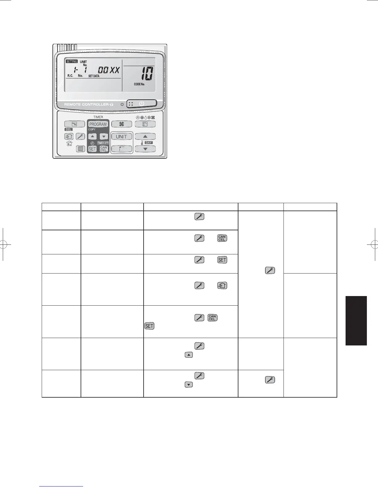 • The remote controller includes a number of servicing functions. Use these as needed for test runs and inspections.