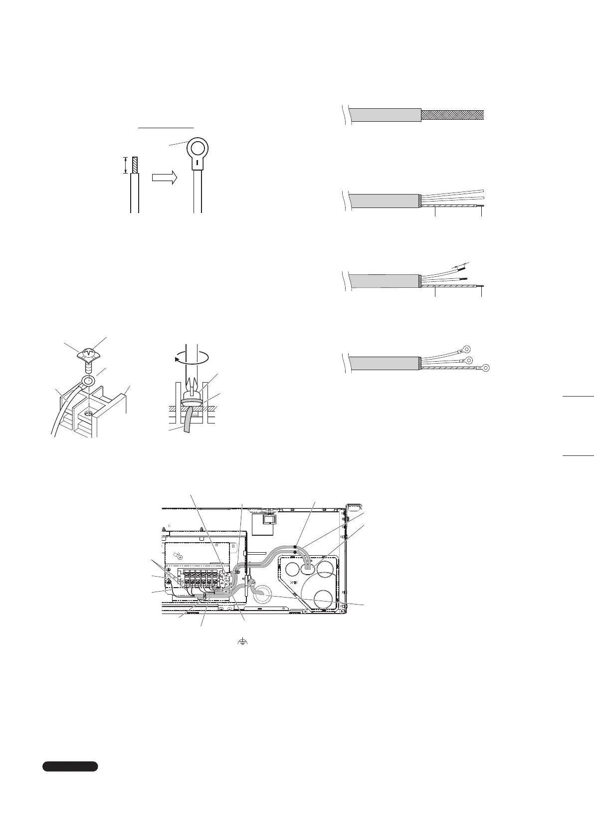 Leid de stroombedrading de binnenunit binnen door het rubber aan de zijkant van de elektrische componentenkast.