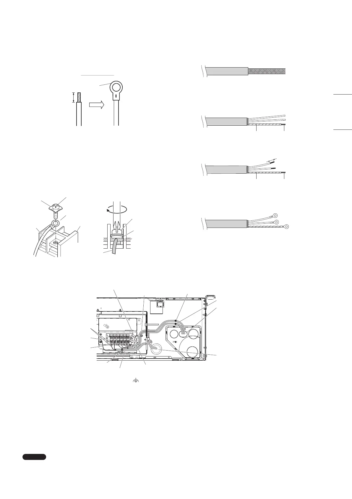● Insérer le câblage électrique dans l’unité intérieure via le caoutchouc du côté du boîtier de composants électriques.