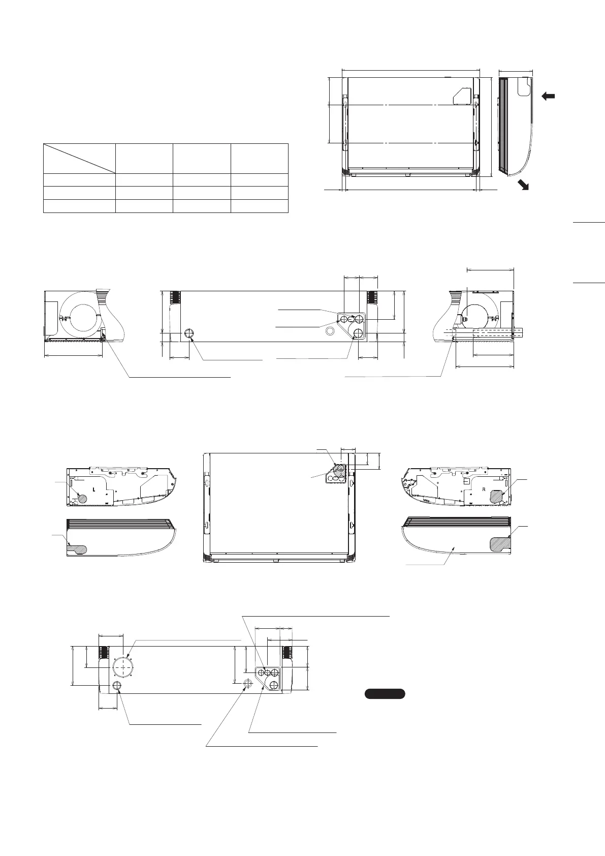 (3) Posición de aberturas de la unidad (tubería de refrigerante • manguera de drenaje • oricio de entrada de alimentación •