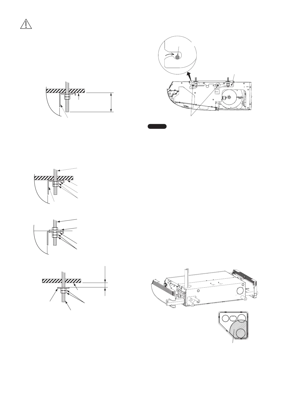 Bei der Aufhängung des Innengeräts an der Decke muss