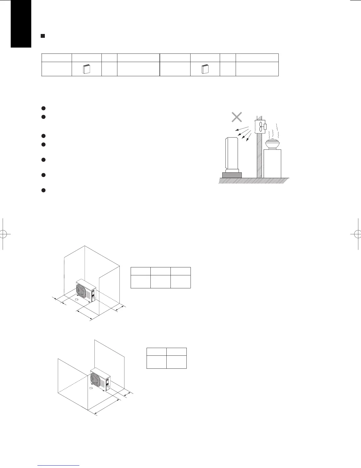 (1) Obstructions on the left side, right side and rear side (Front side and above the unit are opened).