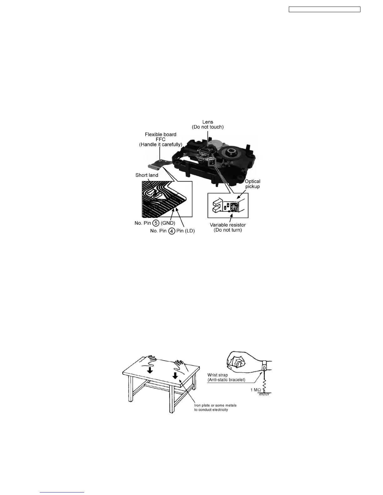 So, be careful of electrostatic breakdown during repair of the traverse deck (optical pickup).