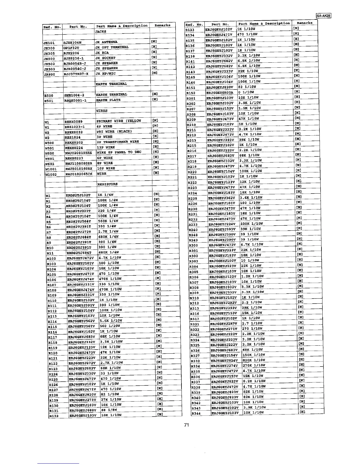 Panasonic SA-AK28 - 20.4. Electrical Parts List; JACKS; EARTH TERMINAL; WIRES