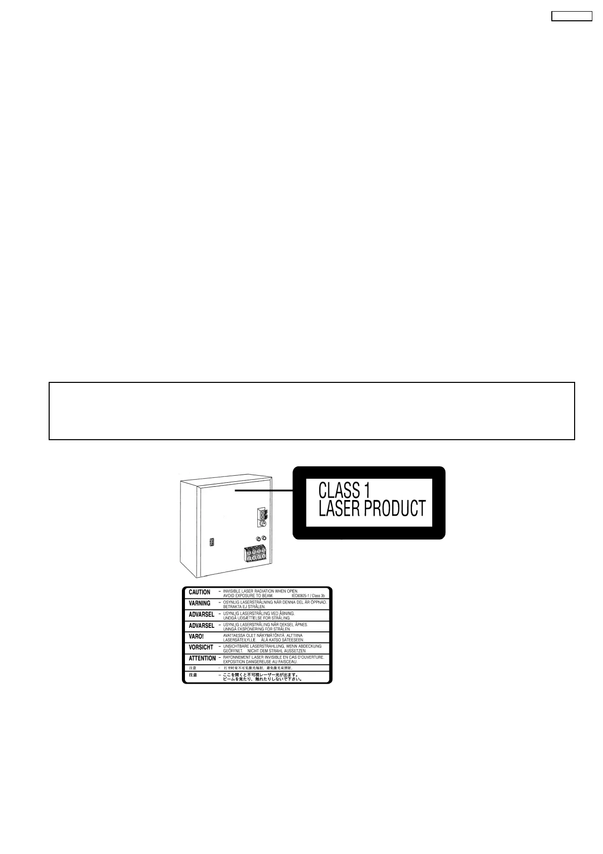 Dieses Produkt enthält eine Laserdiode. Im eingeschalte ten Zustand wird unsichtbare Laserstrahlun g von der Lasereinheit