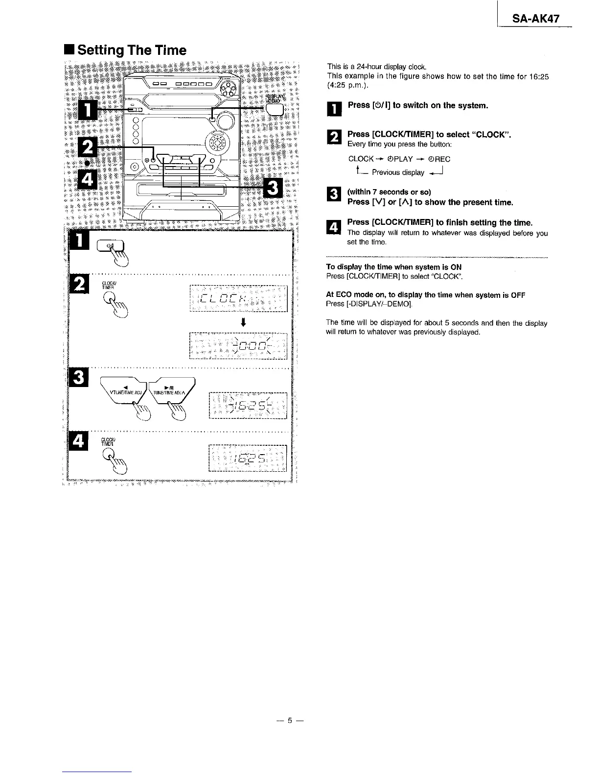 Panasonic SA-AK47 - Basic Operations; Setting The System Time; Displaying Current Time