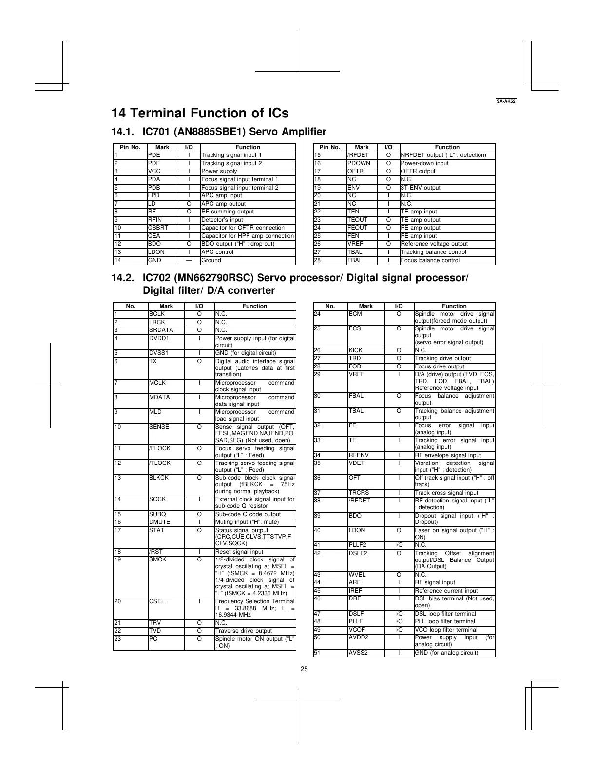 14.2. IC702 (MN662790RSC) Servo processor/ Digital signal processor/