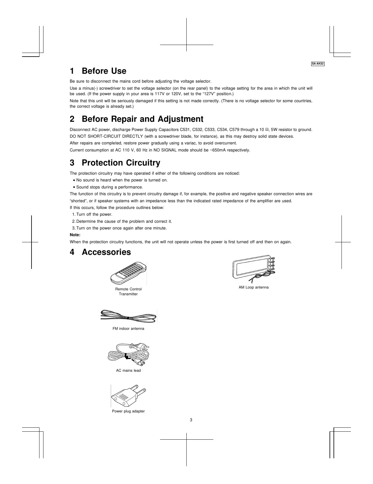 When the protection circuitry functions, the unit will not operate unless the power is first turned off and then on again.