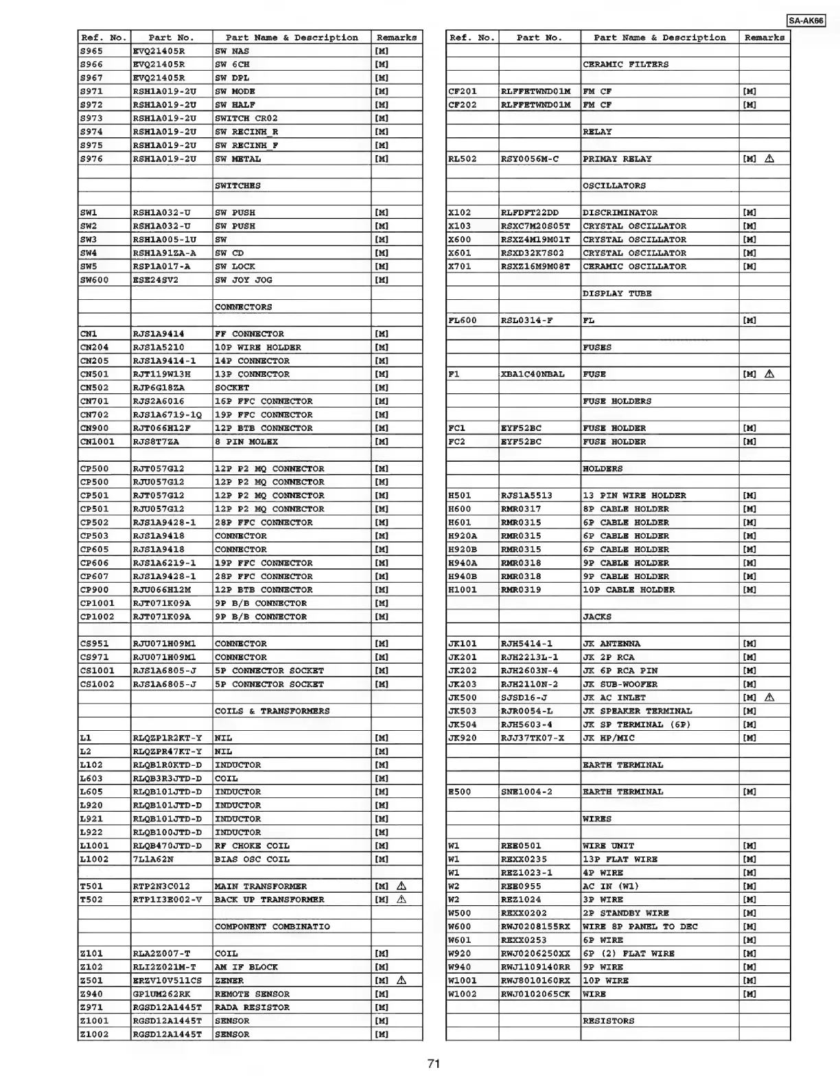 Panasonic SA-AK66 - Switches, Connectors, Coils, and etc.
