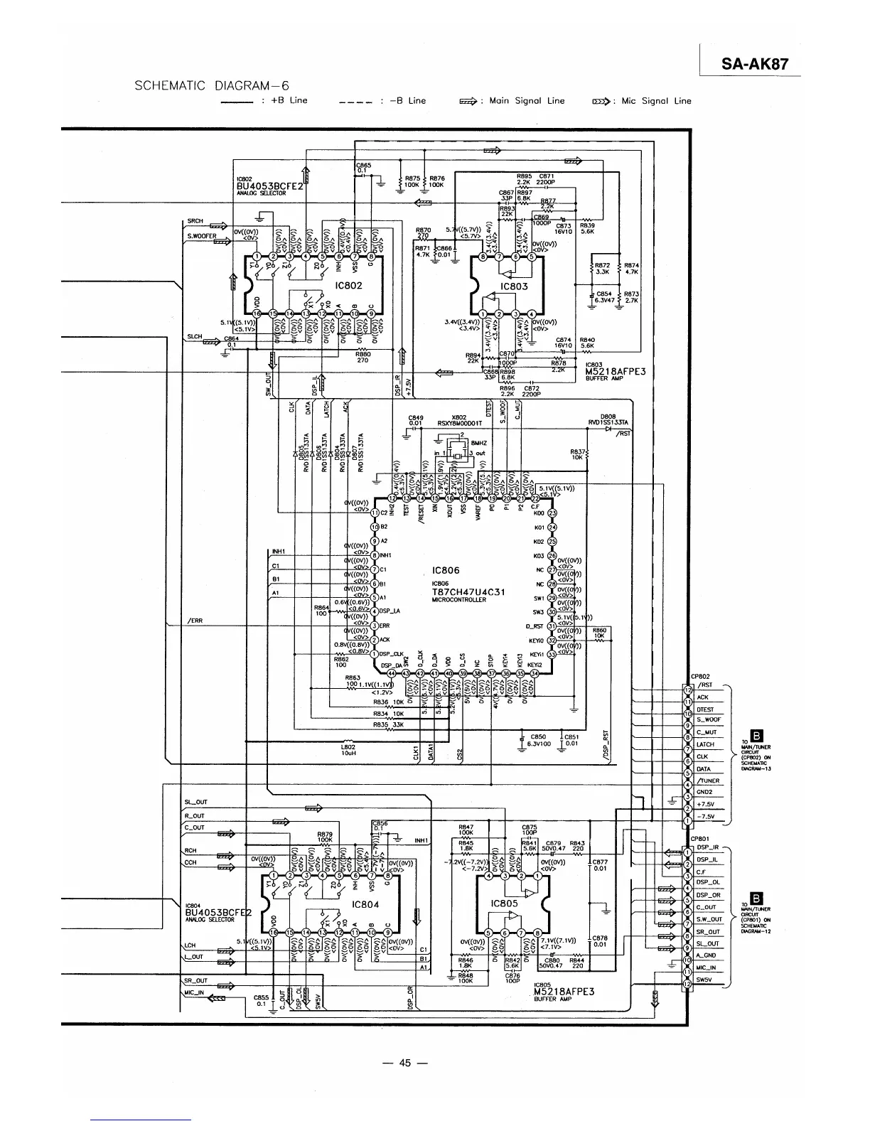 Panasonic SA-AK87 - Schematic Diagram S: Audio and Control Circuits; Audio and Control IC Connections