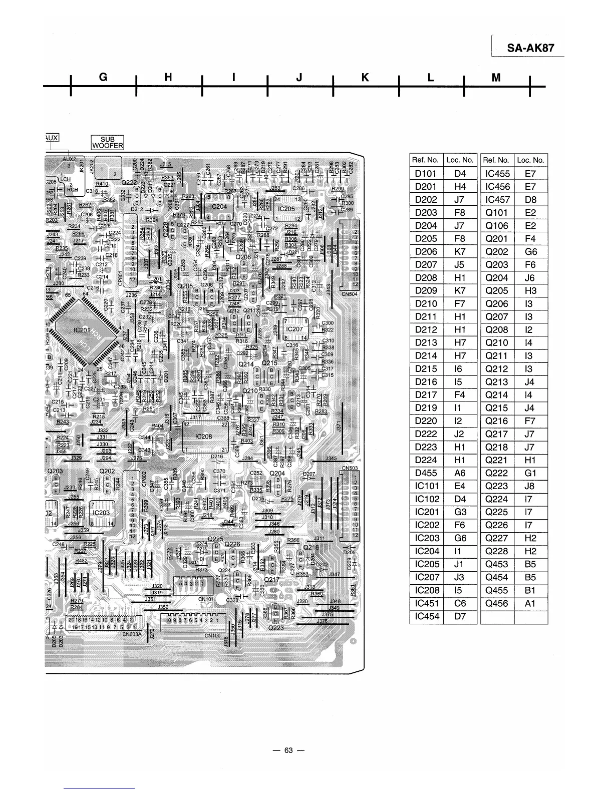 Panasonic SA-AK87 - Printed Circuit Boards (PCBs) Component Locations; Component Location Tables for PCBs