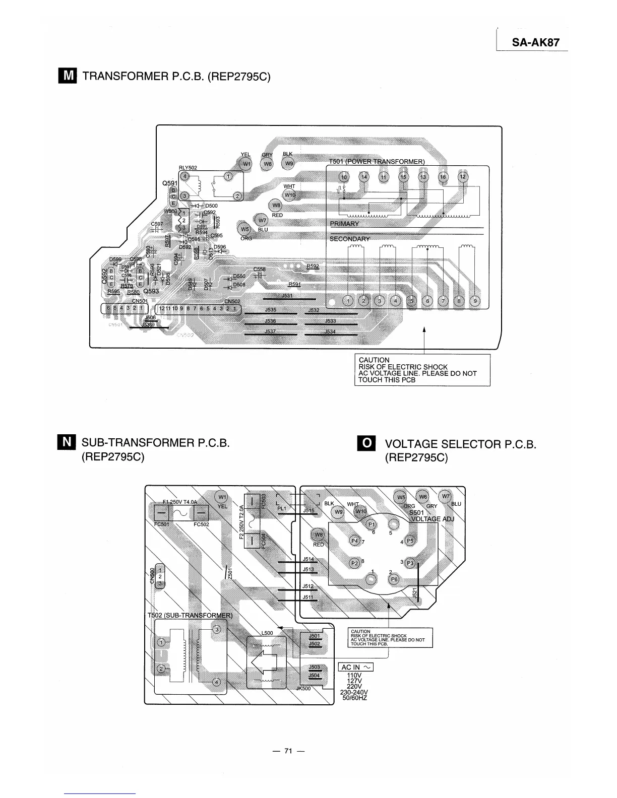 Panasonic SA-AK87 - Printed Circuit Boards (PCBs) Layouts; Transformer P.C.B. Layout Diagram; Sub-Transformer and Voltage Selector P.C.B. Layouts