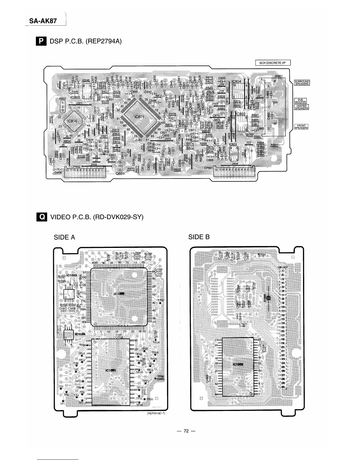 Panasonic SA-AK87 - Printed Circuit Boards (PCBs) Layouts; DSP P.C.B. Layout Diagram; Video P.C.B. Layout Diagram