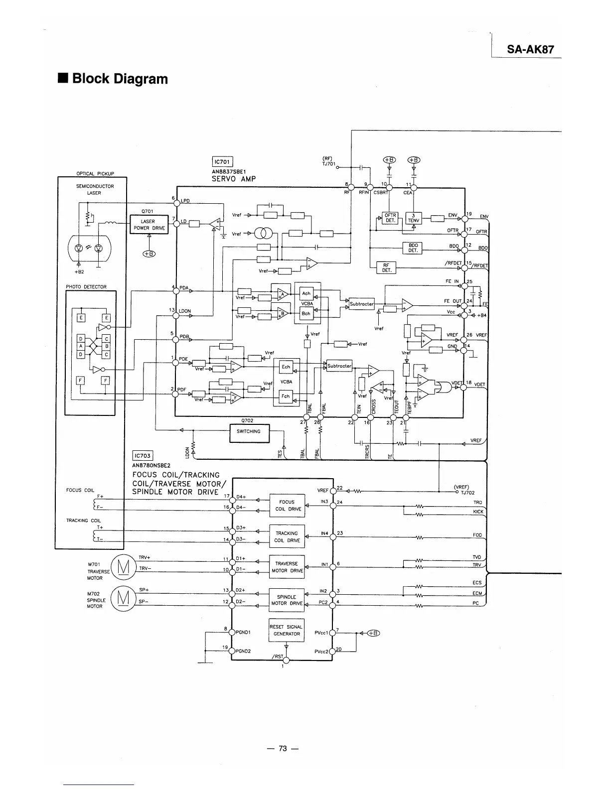 Panasonic SA-AK87 - Block Diagram: Servo and Motor Control; Servo Amplifier Block Diagram Details; Motor Drive System Block Diagram