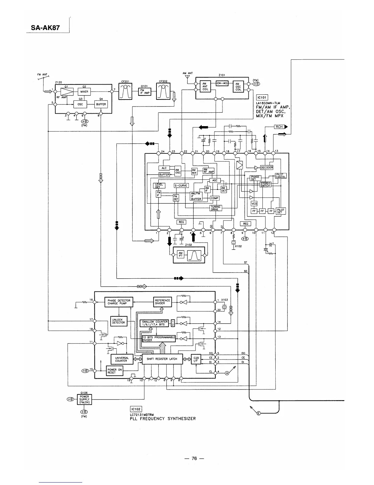 Panasonic SA-AK87 - Block Diagram: Tuner and Frequency Synthesis; Tuner Section Block Diagram; Frequency Synthesizer Block Diagram