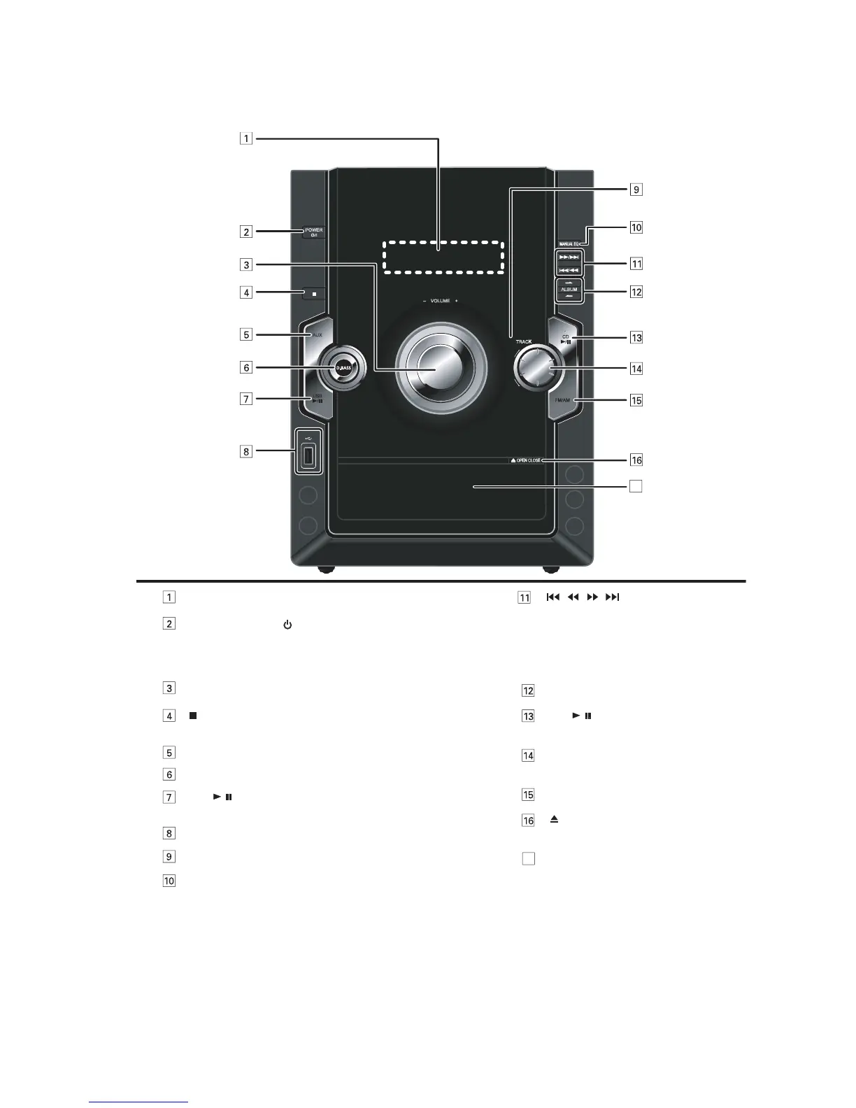 Press to switch the unit from on to standby mode or vice versa.