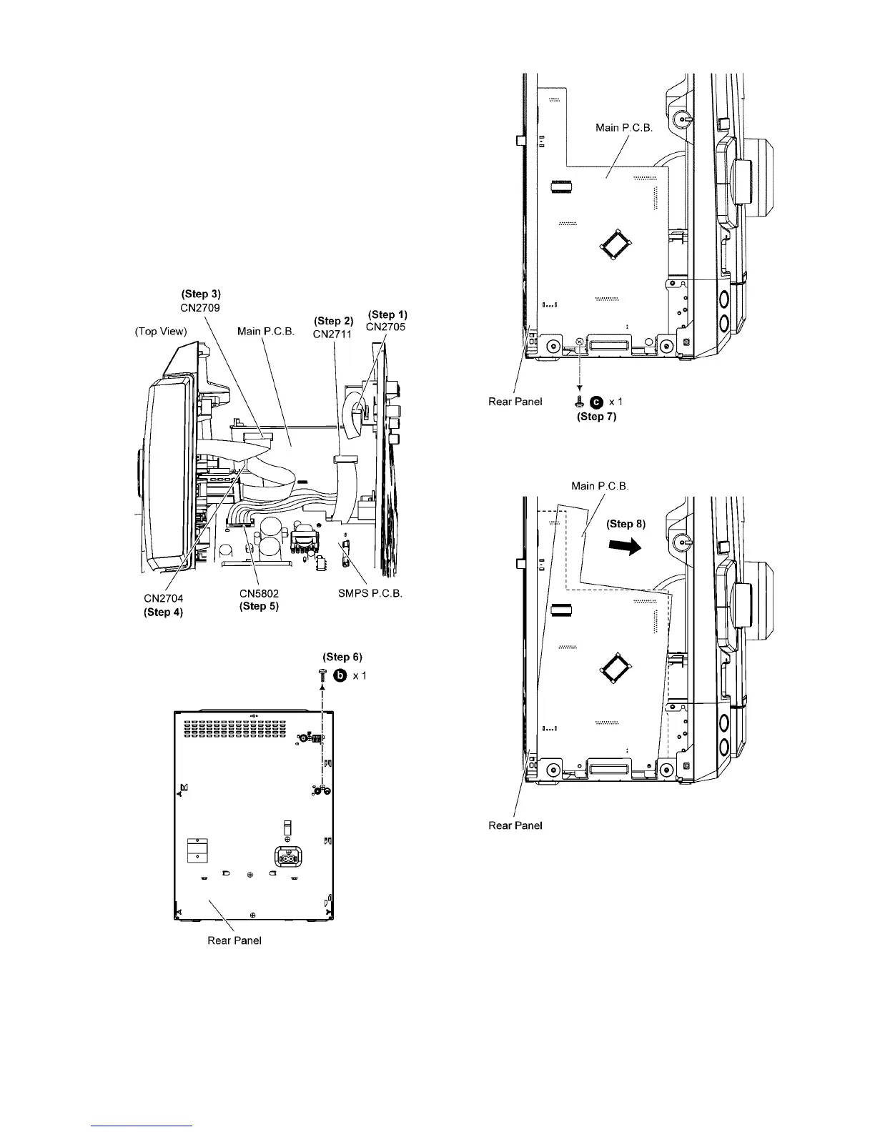 Step 8 Detach Main P.C.B. from Rear Panel according to arrow
