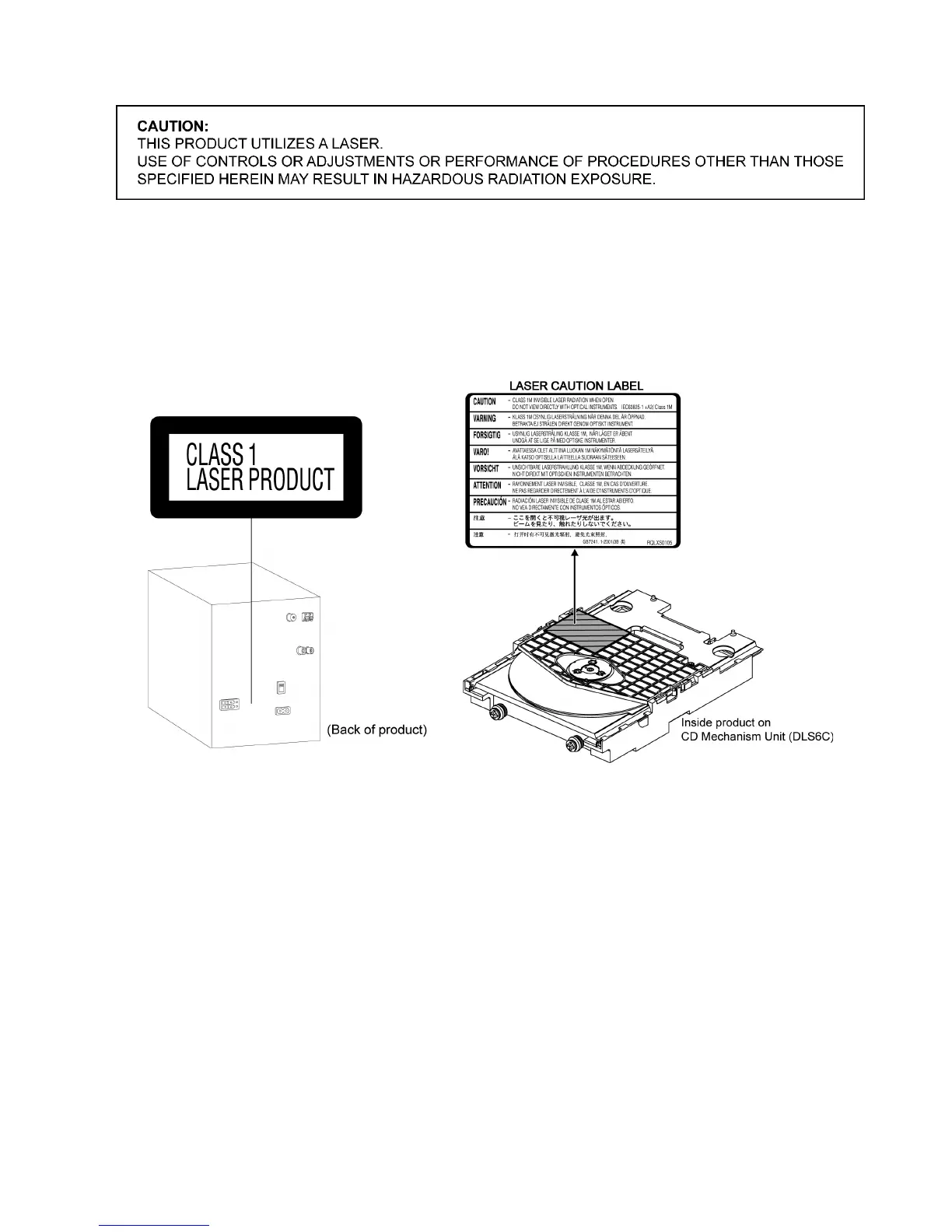 Laser radiation from the pickup unit is safety level, but be sure the followings: