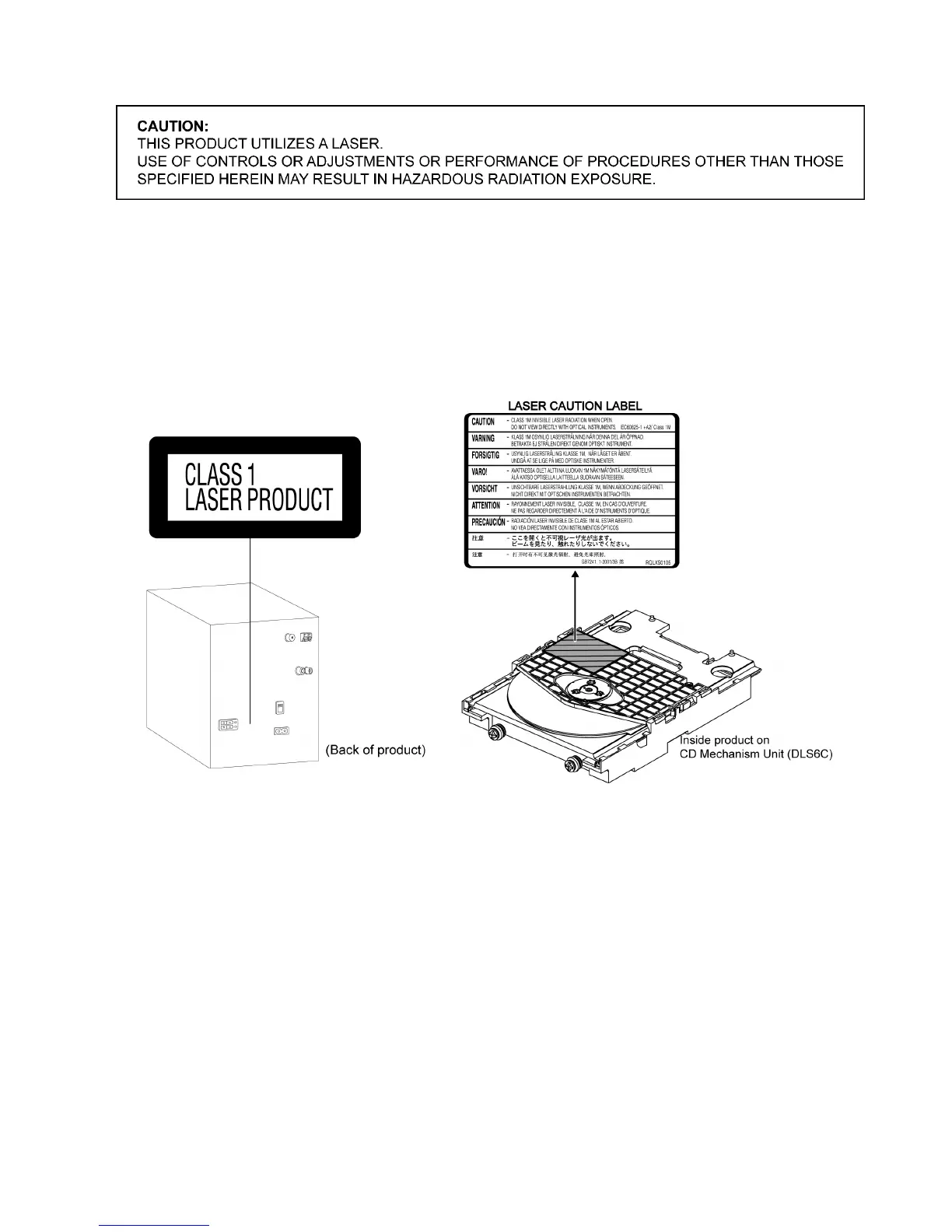 This product utilizes a laser diode with the unit turned “on”, invisible laser radiation is emitted from the pickup lens.