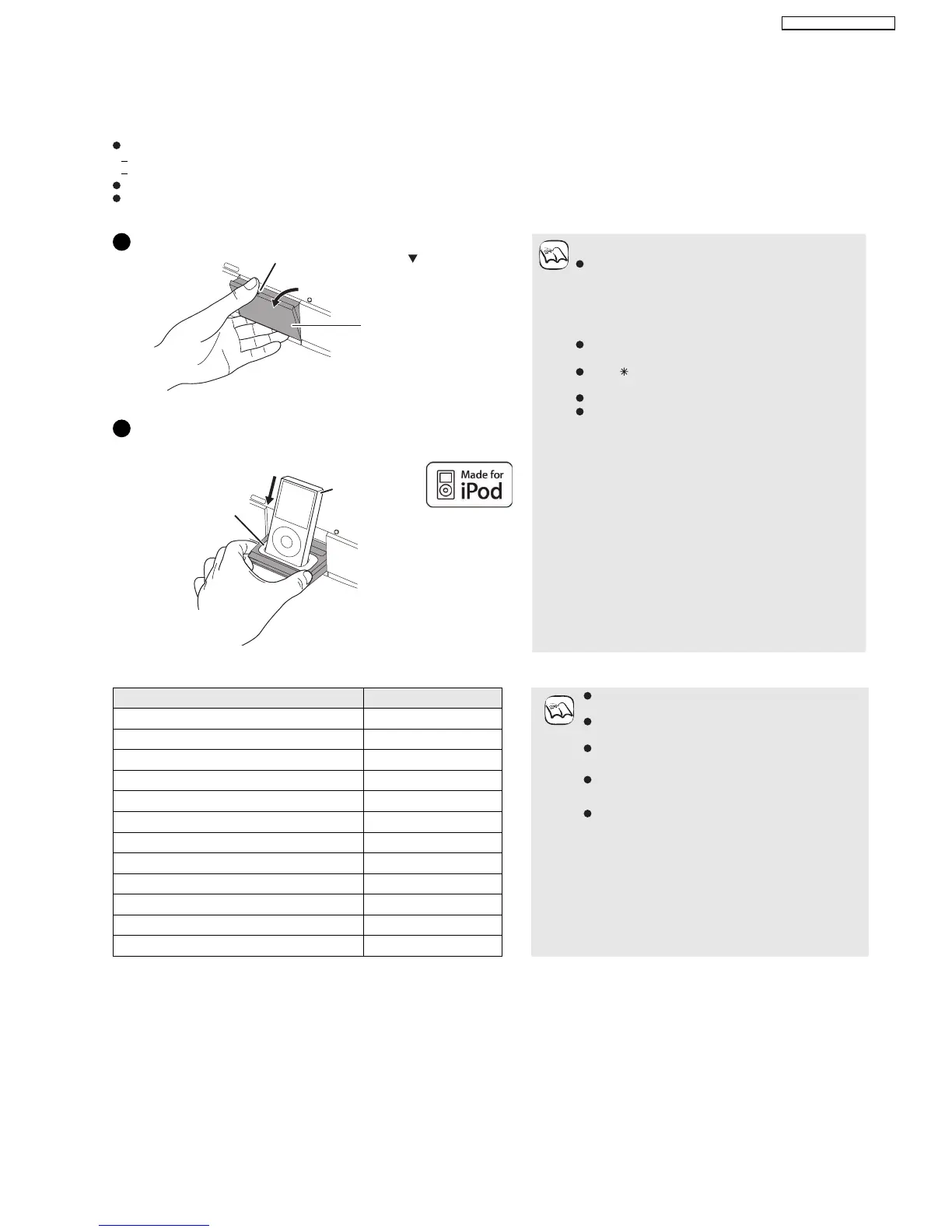 Before connecting/disconnecting the iPod, turn the main unit off or reduce the volume of the main unit to its minimum.