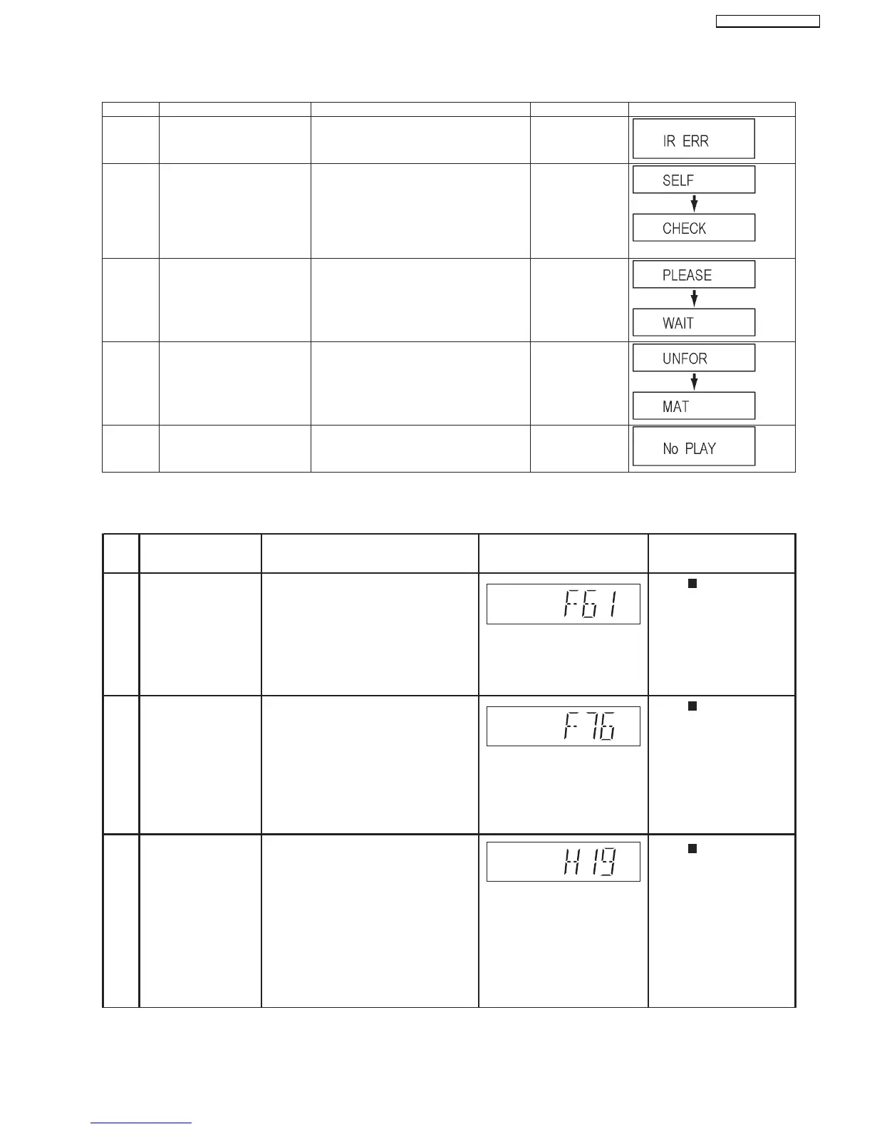 Error Code Diagnosis contents Description Monitor Display Automatic FL display