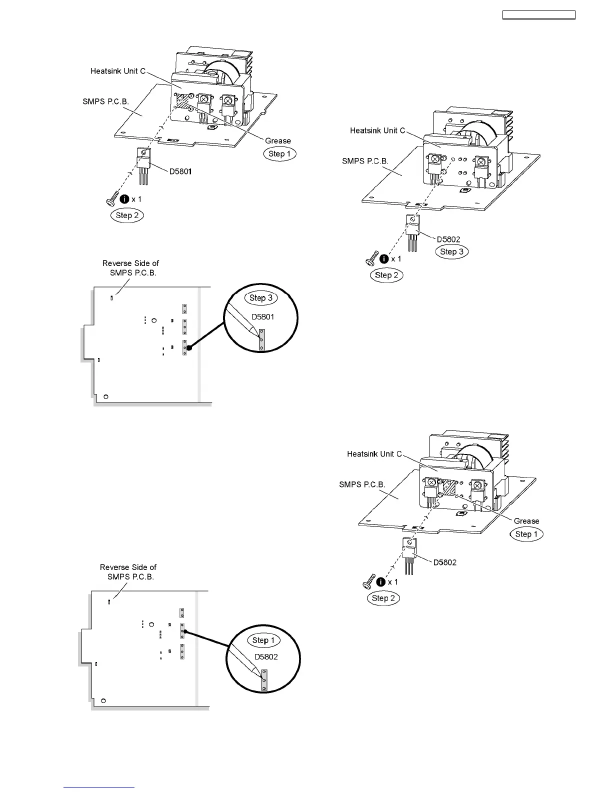 Step 2 Fix and screw the regulator diode (D5802) to the
