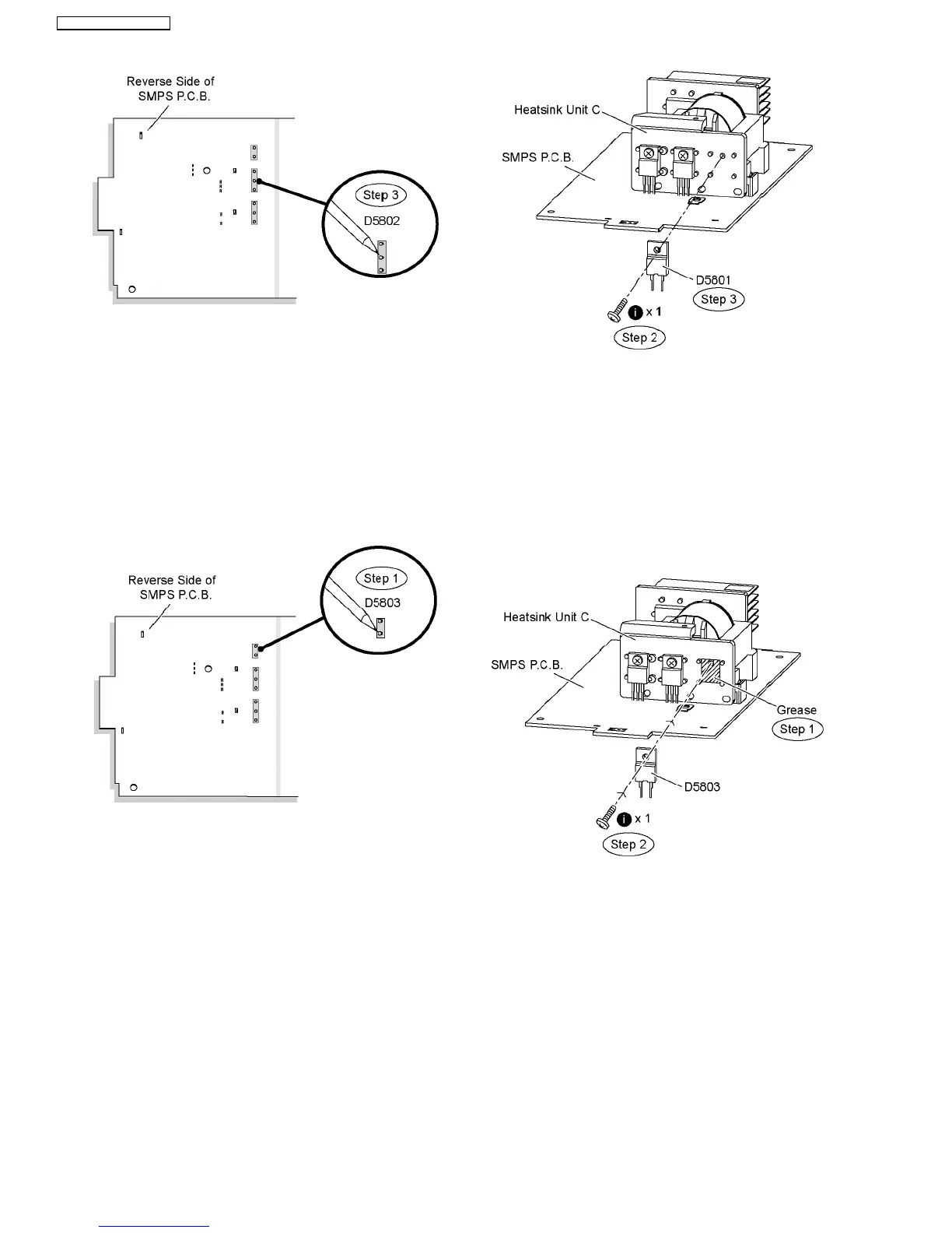 Step 3 Remove the regulator diode (D5803) from the heatsink