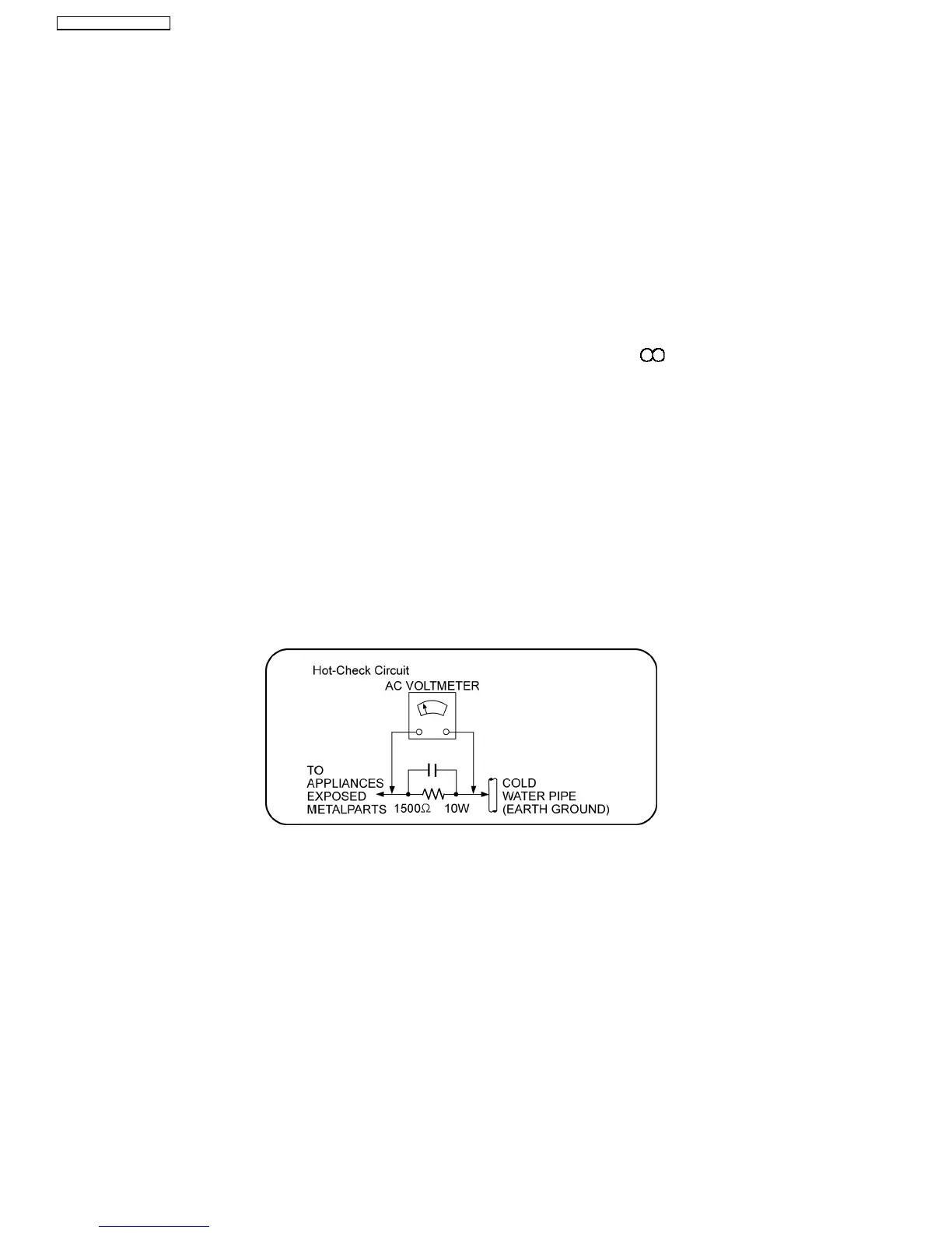 3. After servicing, carry out the following leakage current checks to prevent the customer from being exposed to shock hazards.