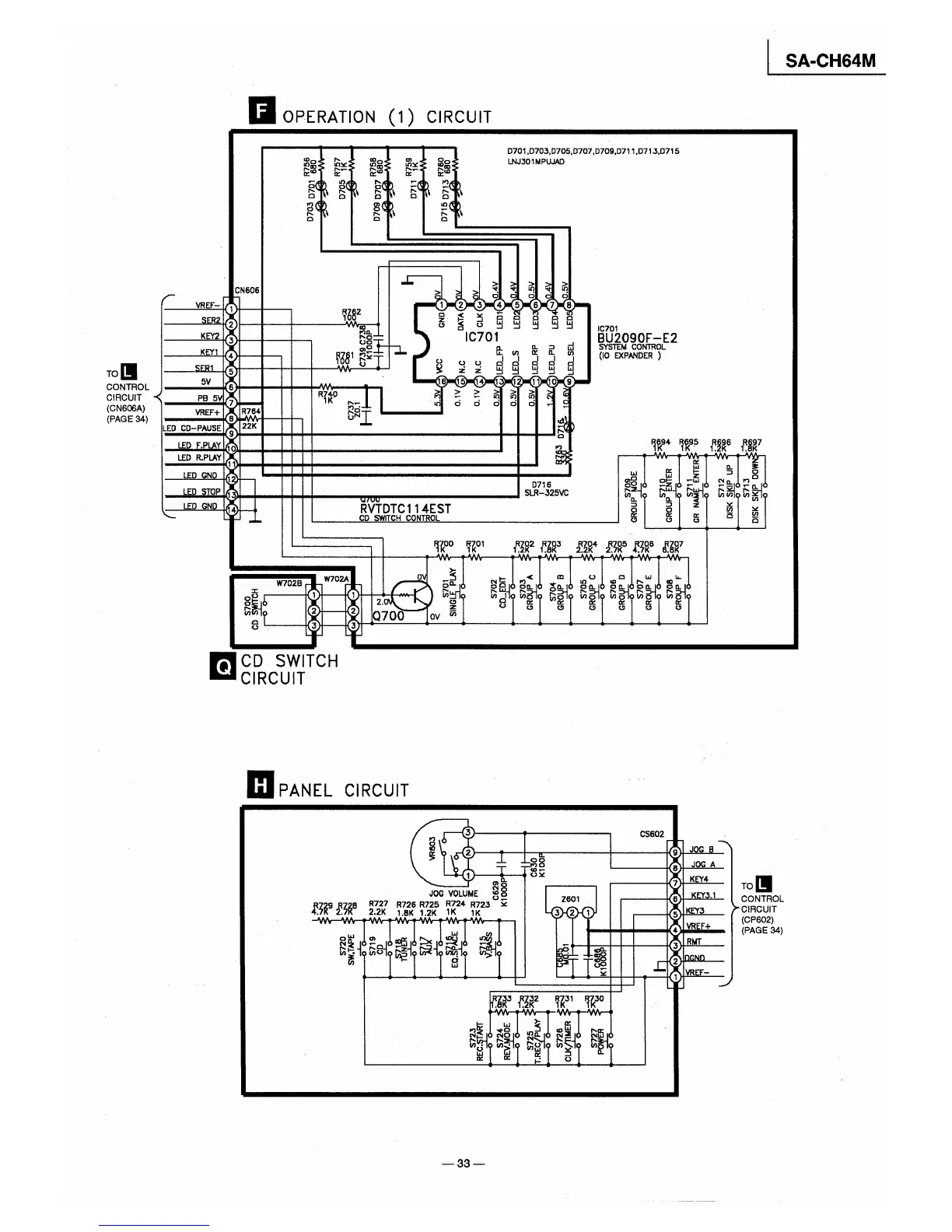 Panasonic SA-CH64M - Operation and Interface Circuits; Operation (1) and CD Switch Circuits; Panel Circuit Diagram