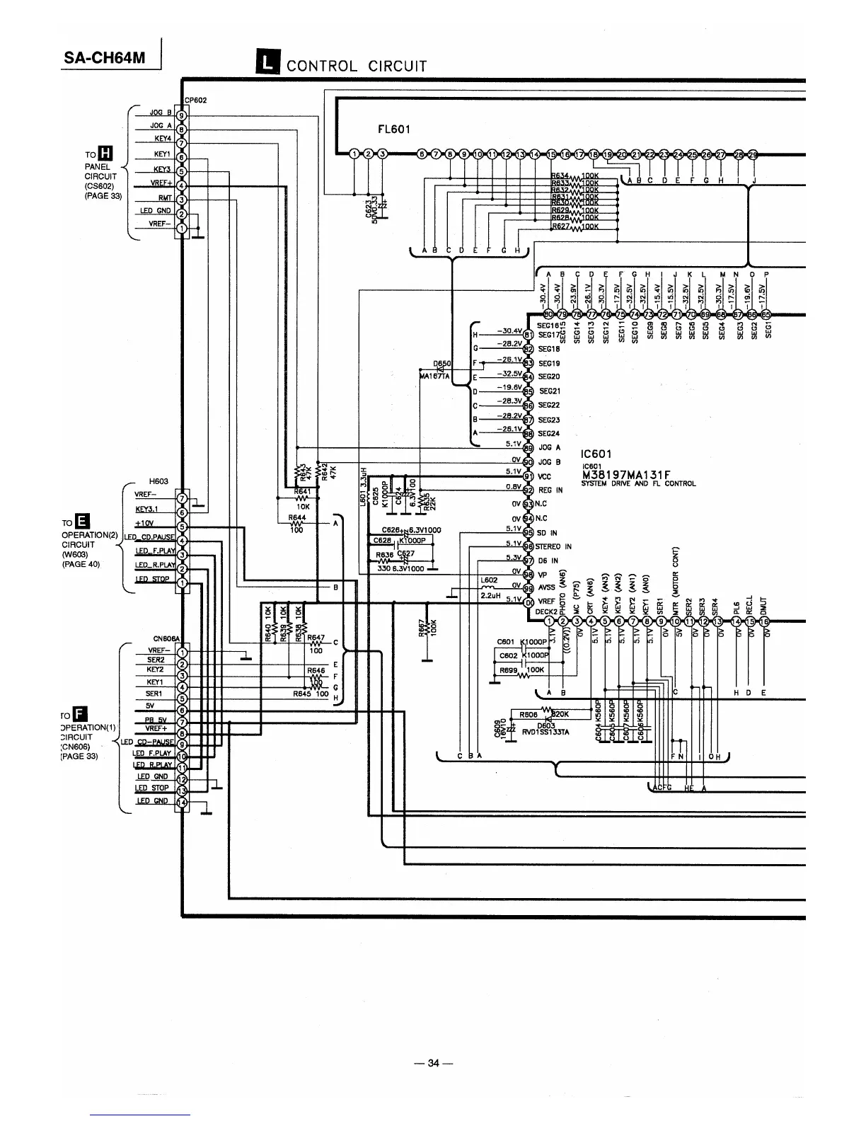 Panasonic SA-CH64M - Control Circuitry Details; System Control and FL Display Circuit
