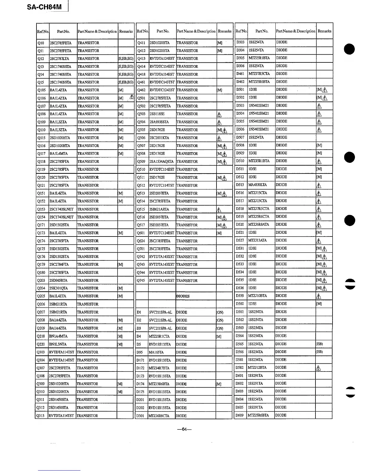 Panasonic SA-CH84M - Replacement Parts List (Page 64)
