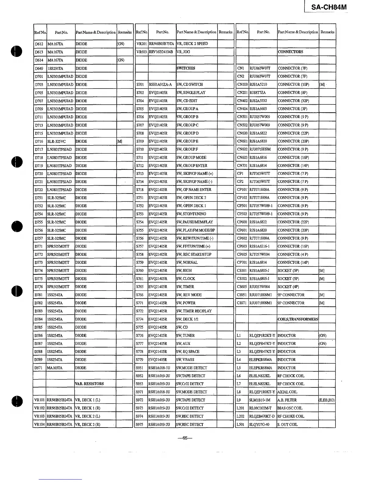 Panasonic SA-CH84M - Replacement Parts List (Page 65); SWITCHES
