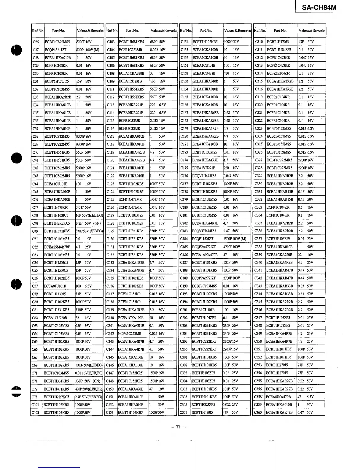 Panasonic SA-CH84M - Resistors & Capacitors (Page 71)