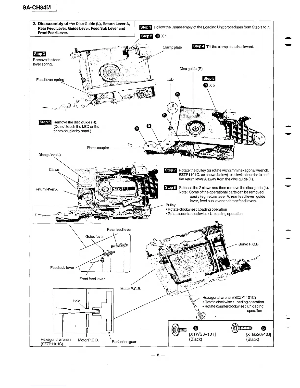 Panasonic SA-CH84M - Disassembly of the Disc Guide (L), Return Lever A, Rear Feed Lever