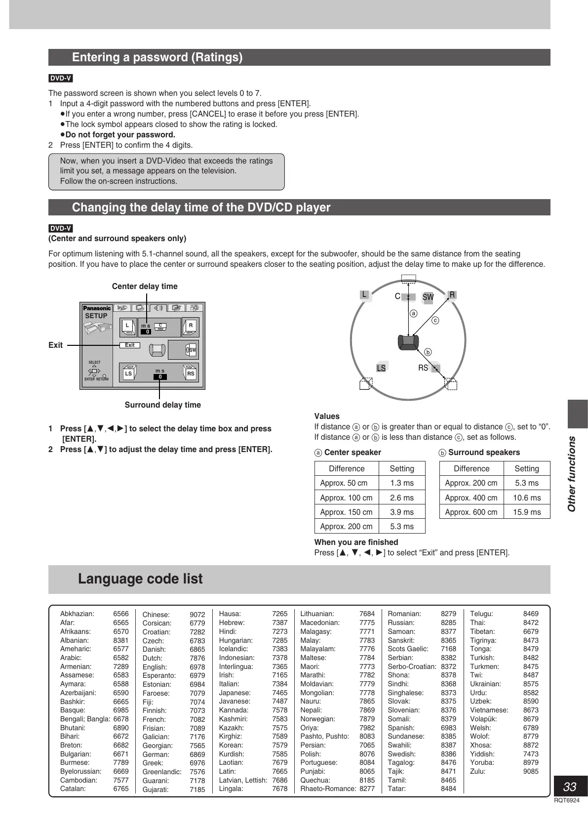 position. If you have to place the center or surround speakers closer to the seating position, adjust the delay time to make up for the difference.