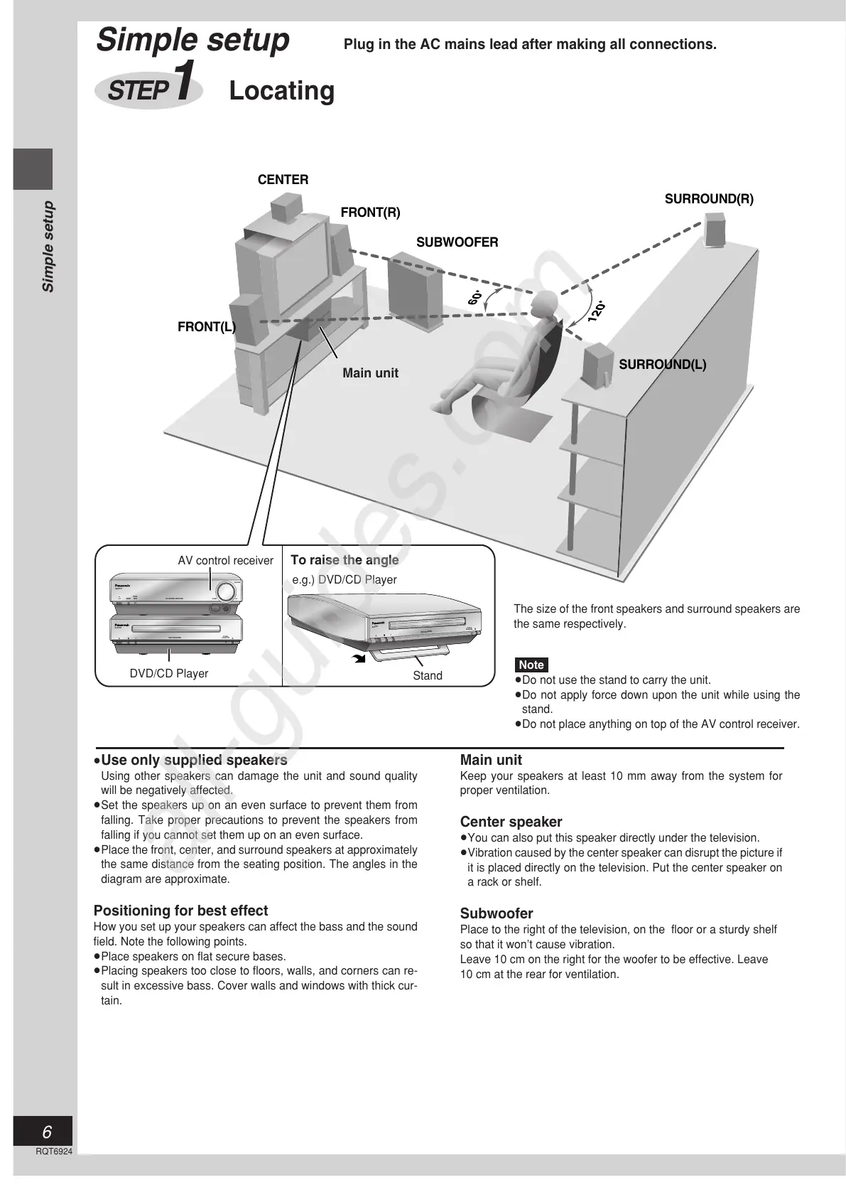 Leave 10 cm on the right for the woofer to be effective. Leave