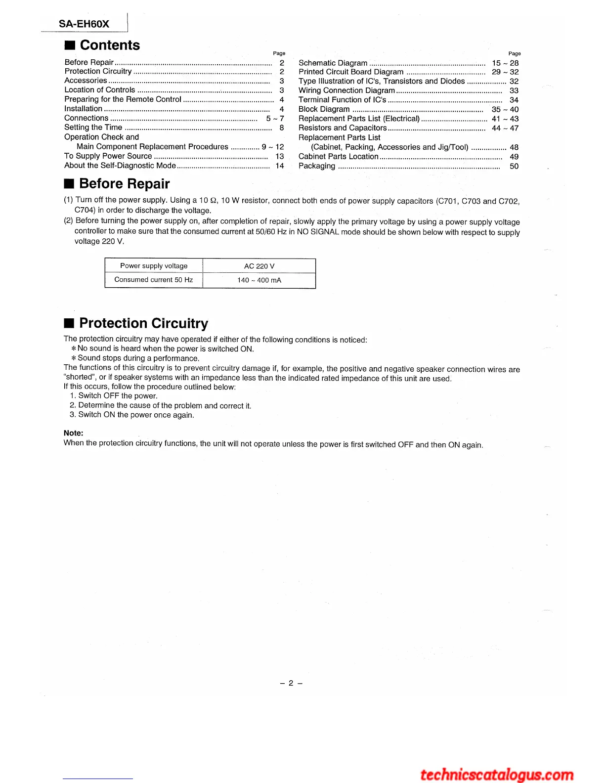 Panasonic SA-EH60X - Pre-Repair Procedures; Capacitor Discharge and Voltage Check; Protection Circuitry; Protection Circuit Operation and Troubleshooting