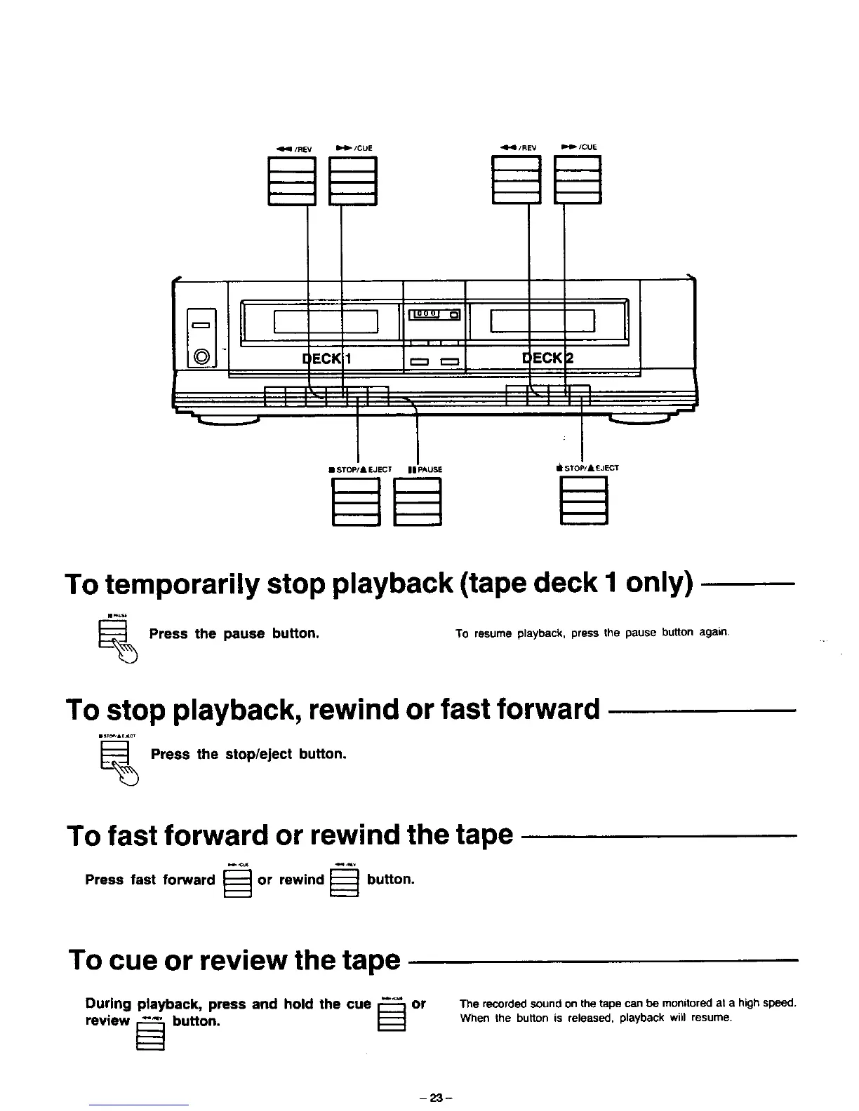 To stop playback, rewind or fast forward