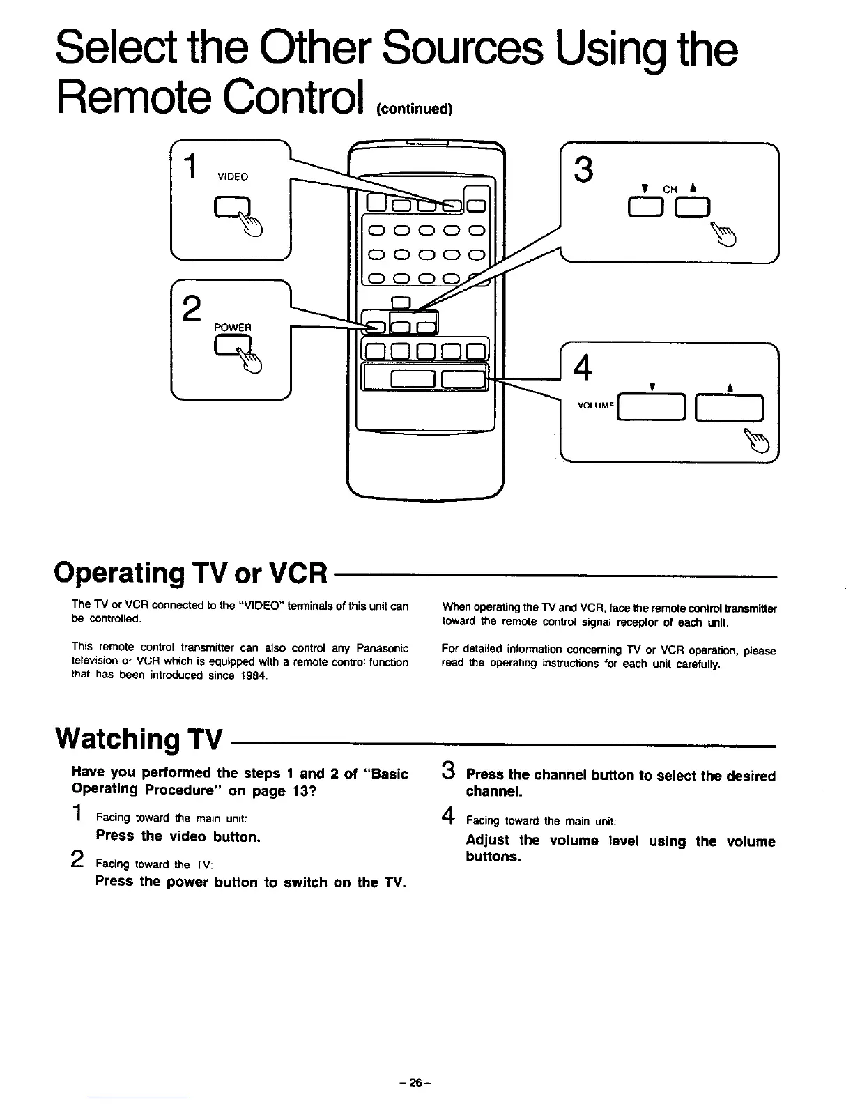 The TV or VCR connected to the "VIDEO" terminals of this unit can