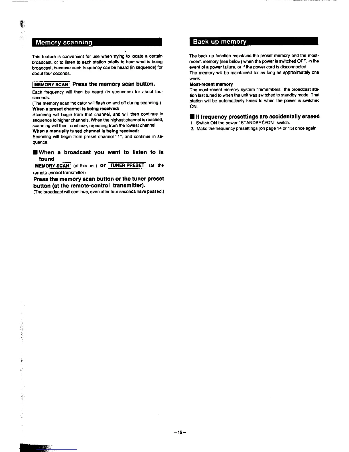 Panasonic SA-HD52 - Memory Scanning; Back-Up Memory