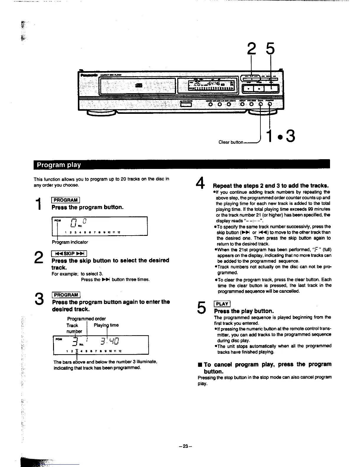 Panasonic SA-HD52 - Program Play; To Cancel Program Play