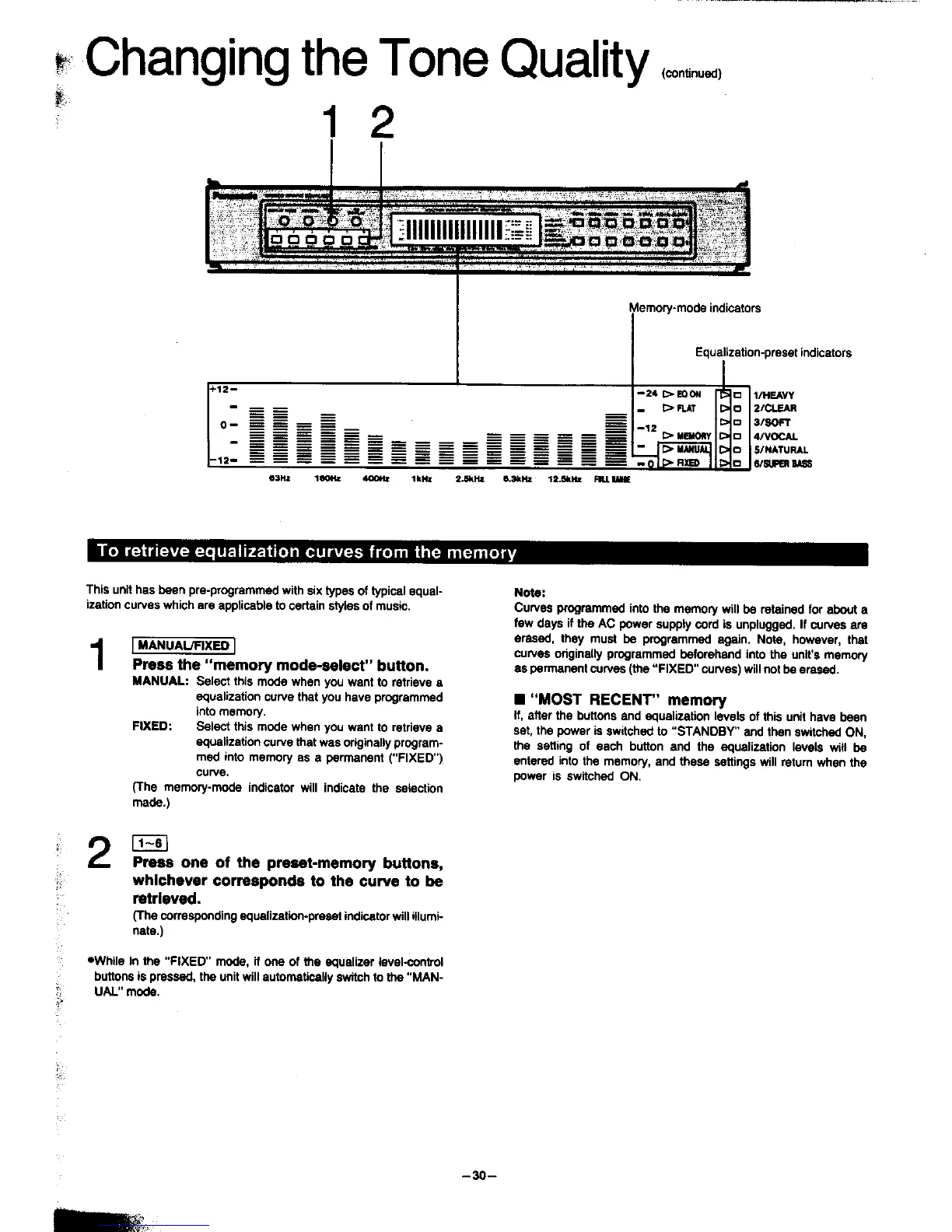 Panasonic SA-HD52 - To Retrieve Equalization Curves; MOST RECENT Memory
