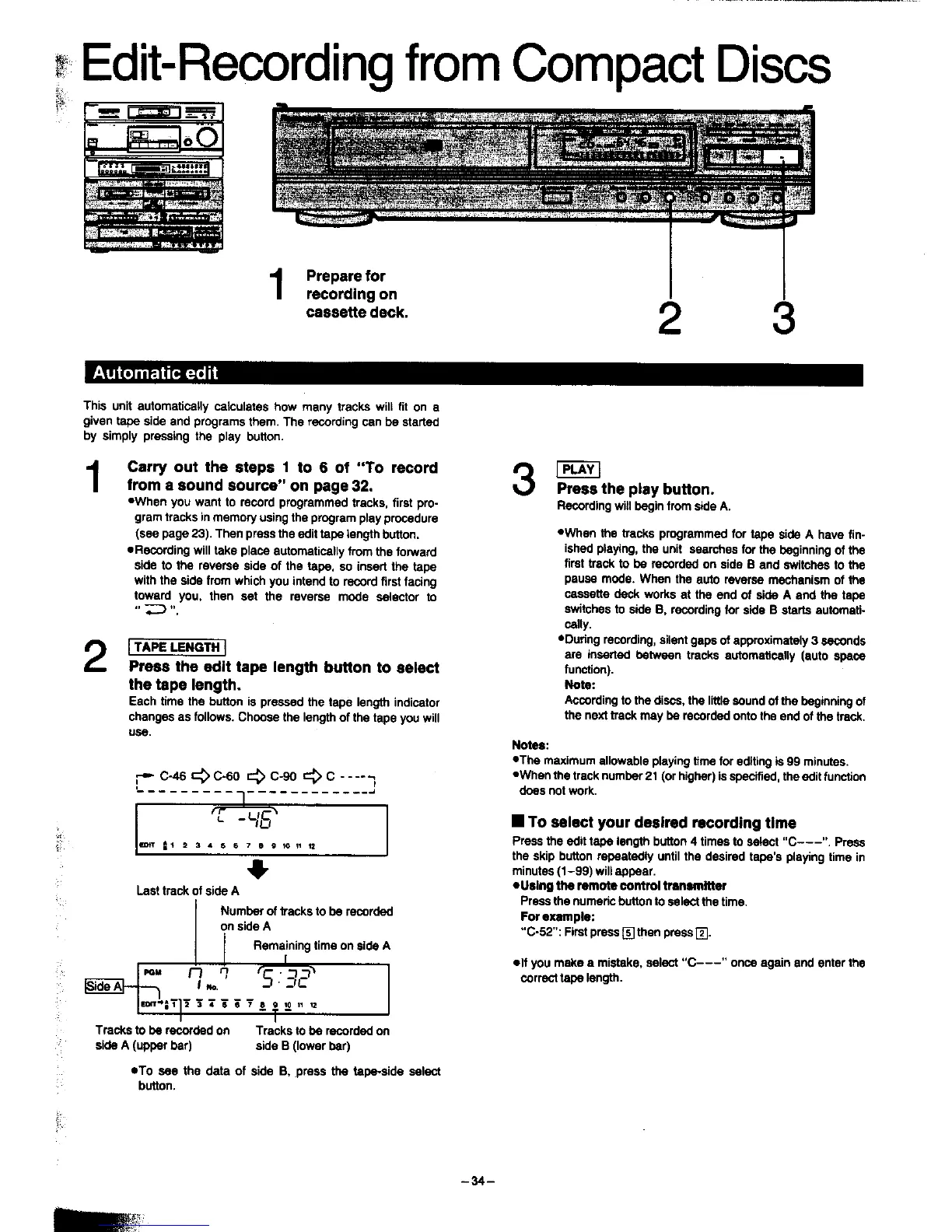 Panasonic SA-HD52 - Automatic CD to Tape Editing; Automated Track Programming for Taping; Setting Tape Length for Editing